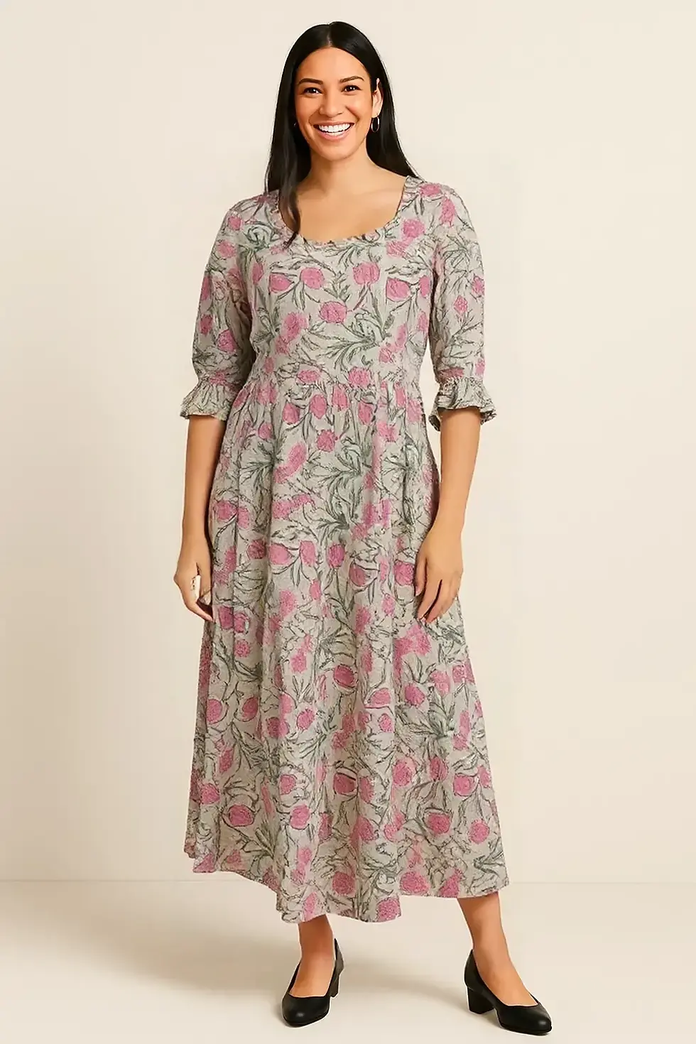 Water Lily Midi Dress With Gather Details
